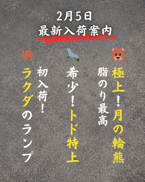 #noblesseoblige #卸売 #仕入れ #業務用 #料理人 #シェフ #ジビエ #ダチョウ肉 #ラム #トド肉 #ラクダ肉 #熊肉 #ツキノワグマ #月の輪熊