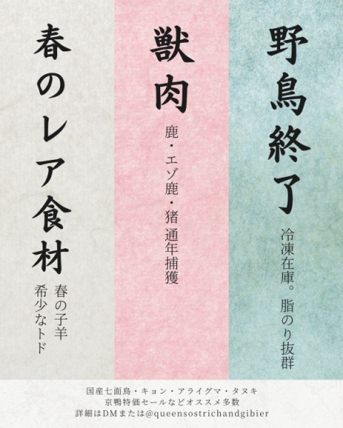 #noblesseoblige #卸売 #仕入れ #業務用 #料理人 #シェフ #ジビエ #ダチョウ肉 #ラム #トド肉 #キョン #キョン肉 #アライグマ肉 #タヌキ肉 #猪肉 #鹿肉 #国産七面鳥